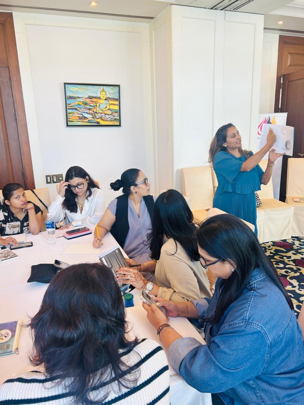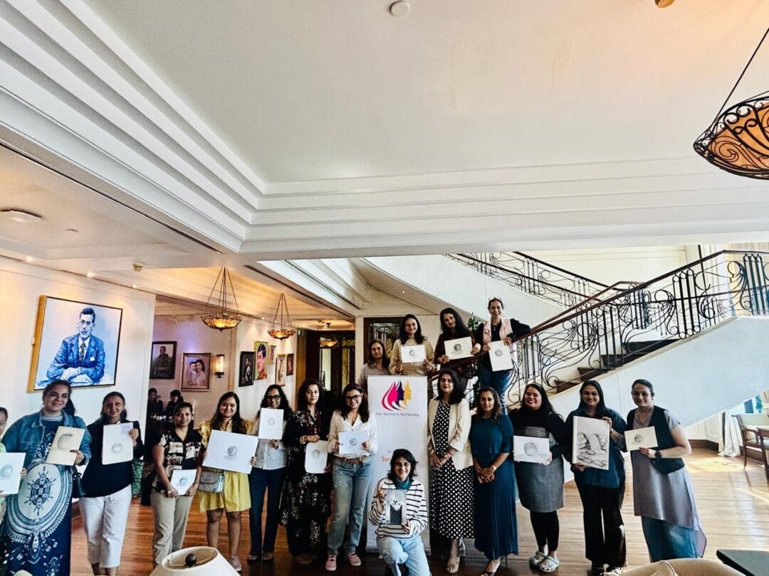 This was followed by a deeply freeing art experience with Deeptina Kothari, an artist who reminded us that art is for everyone. Through simple guided exercises, women discovered how drawing can become a medium of self-expression and emotional release, and how anxiety gently dissolves when creativity flows without judgment.